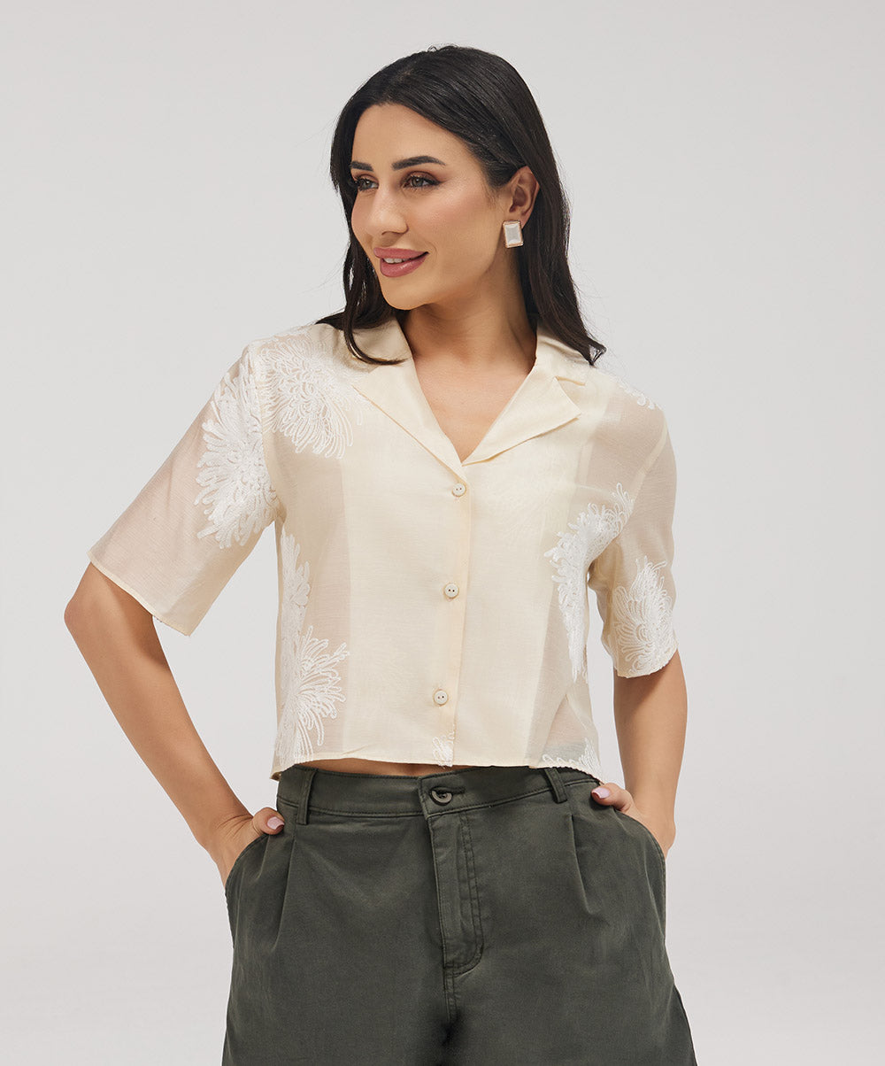 Lapel Detailed Embroidered Top